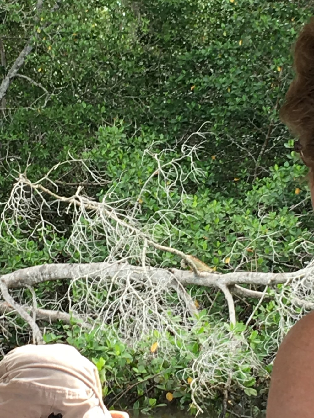 I got a seat in the back by the side of the boat, and once we left the dock, we were off. It was a slow moving boat, and a beautiful warm day. Aaron said that Puntarenas was the hottest spot in all of Costa Rica, averaging about 95 degrees Fahrenheit at the pier. This felt like a very real version of Disney’s Jungle Cruise! In the mangroves, we saw two different kinds of iguana, and this is when Aaron told us that chicken tastes like iguanas. He said that when chickens were introduced to the country, the native people said that the meat tastes exactly like iguanas. I think I’ll stick with chicken!