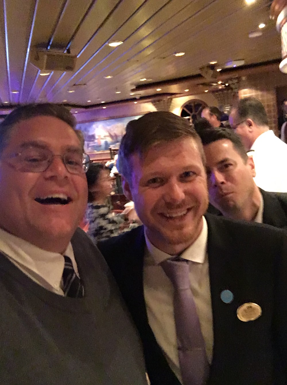 - Captain’s Circle. Captain’s Circle is Princess Cruises’ loyalty program for past passengers. Passengers qualify for the levels based on the number of cruises sailed, or either days cruised (whichever is higher). I’ll be writing a future entry about this, as there is a lot of information about the Captain’s Circle. Needless to say, I liked this, since it made this list. More info to follow in the coming weeks! Pictured below is me with the cruise director and one of his staff doing the photo-bomb. I was at one of the Captain’s Cocktail parties for members of the Captain’s Circle.