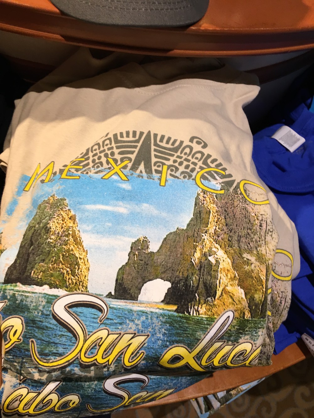 - The gift shops. I usually try to stay out of gift shops on ships. I don’t purchase alcohol to have to carry home. I don’t wear jewelry, so no need to look. I don’t need another watch. I can buy rum cakes locally (I live in South Florida). I usually pack everything I need, so there is usually no need of sundries. But, even though Princess had all of the above, they also had branded Princess merchandise that featured the destinations that we visited on this particular itinerary. I asked the manager of the retail shops, and she said that every Princess cruise & every ship has similar destination T-shirts. The price of these shirts? $12.99…OR two for $20.00. I got a T-shirt from every destination we visited, right on the ship. AND, I used my onboard credit that I got at the time of booking to pay for the shirts.