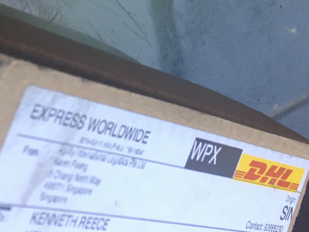 Imagine my surprise when the doorbell rang and DHL was at the door with a small box for me. My first thought was “I didn’t order anything to be shipped from DHL!”. Then I looked at the return address. This box was from Singapore. Super Cool!