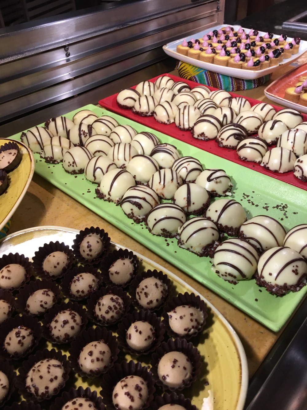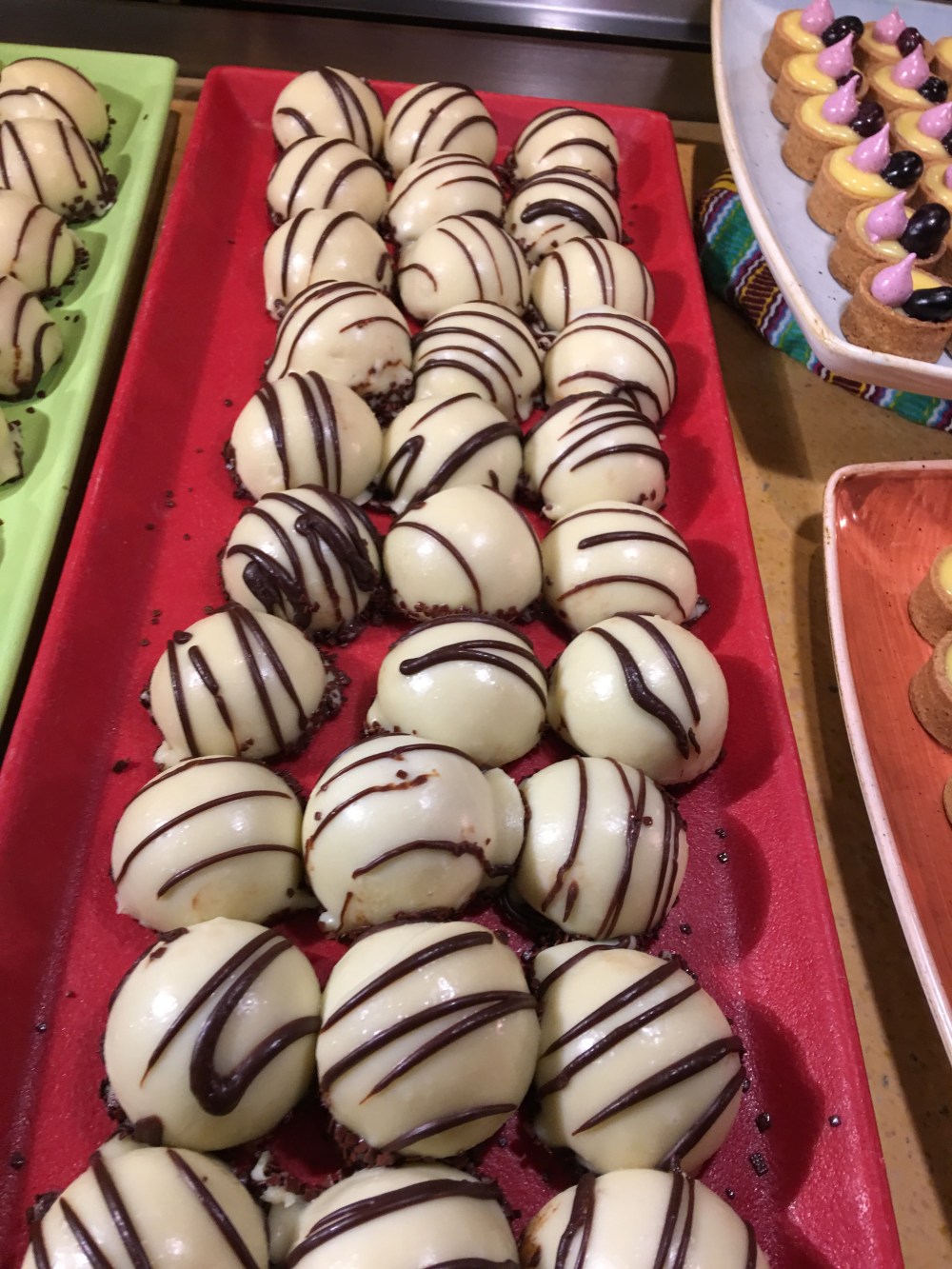 The Zebra Domes are one of Boma’s signature desserts. Make sure that you save a bit of room at the end of your meal for one or two. (or three!). Or, just start your meal with one. No one is going to stop you. These are sweet, creamy & luscious; and I love them. They are so popular, that you can purchase them in Jambo House’s quick service eatery, The Mara. In fact, I’ve actually made a special trip to Animal Kingdom Lodge just to pick up a few of these treats.