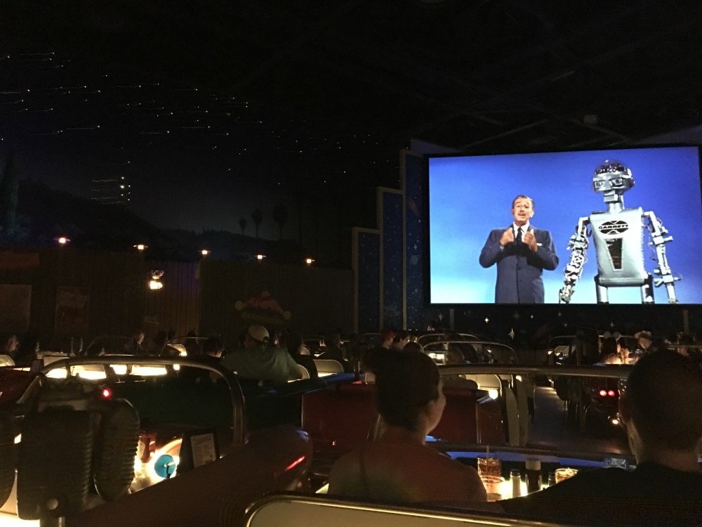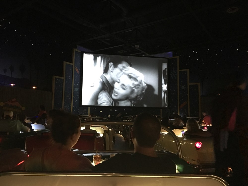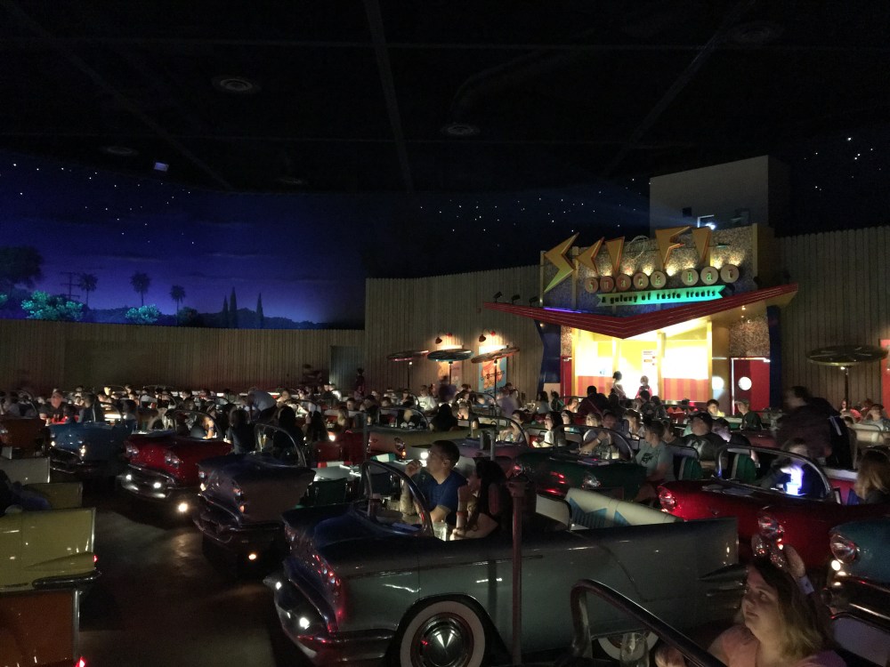 I found myself hot, hungry and thirsty the other day while touring Disney’s Hollywood Studios. And I didn’t have any reservations for dining. Not a great combination. I was walking by the Sci-Fi Dine-In Theater Restaurant and thought I would take a chance on getting a car for dinner. Yes, a car! When you eat at the Sci-Fi you sit at a table made from a car. The Cast Member at the podium said that she could sit me within the next 30-40 minutes and that I could wait next door in the bar. She asked for my cell phone number and said I would receive a text when my car was ready.