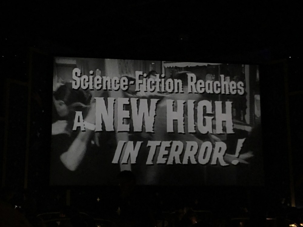 A parking attendant showed me to my car. This is a very cool restaurant! It looks as if you are eating at a 1950’s era Drive-In. On the screen is about a 45 minute loop of the cheesiest, fun and geekiest sci-fi B-movies from the 1950’s! Even Walt Disney and Garco make an appearance!