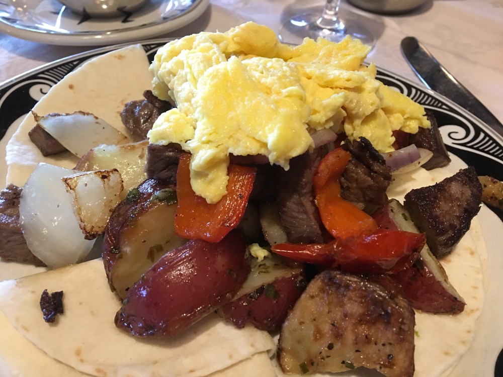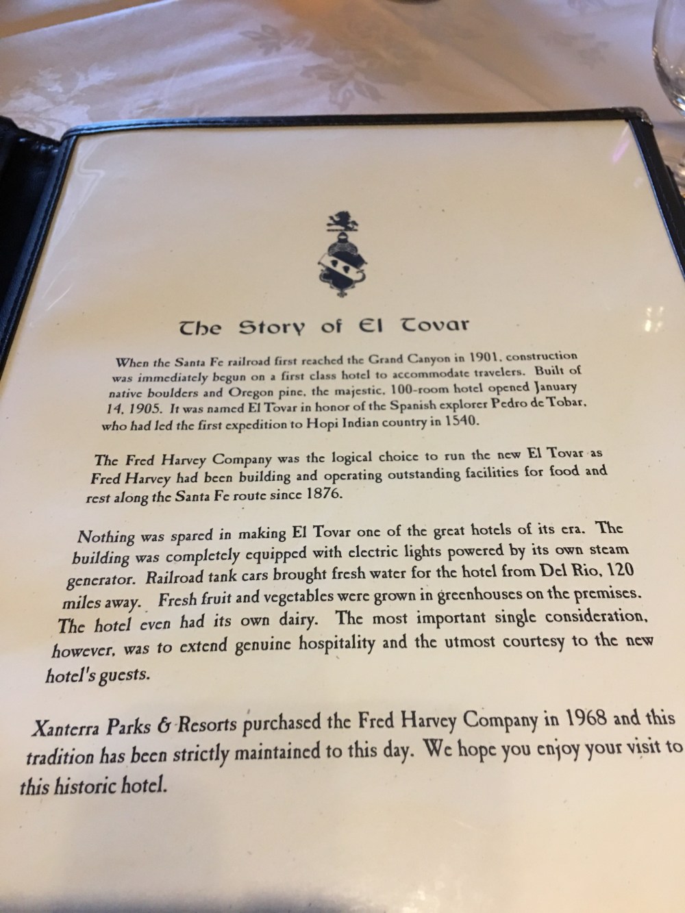 This morning, breakfast was included, we had “coupons” that the ABD Guides had given us, and basically we could order anything from the menu. The two meals we had at the El Tovar were probably my favorite breakfasts of the trip! This morning I had the Prime Rib Hash, and it was amazing.