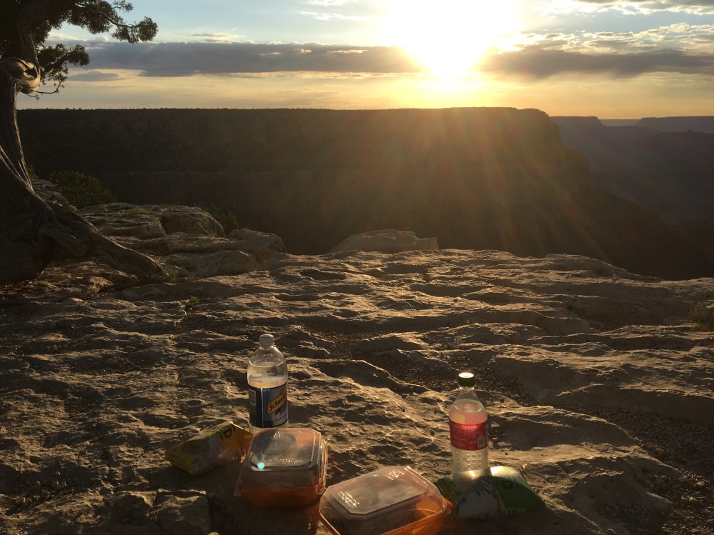 Tonight’s dinner was going to be a bit different. Diana, our amazing ABD Guide, suggested that we go to the Grand Canyon Village grocery store (they have a deli in the front) pick up a few sandwiches and have a picnic dinner on the rim of the canyon at sunset. We decided to do just that!