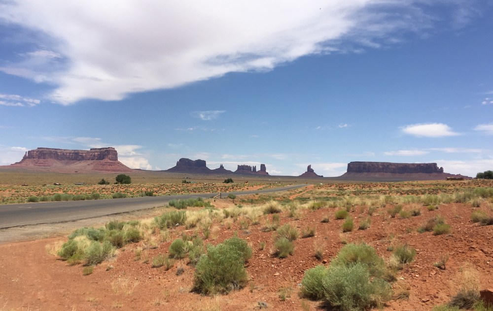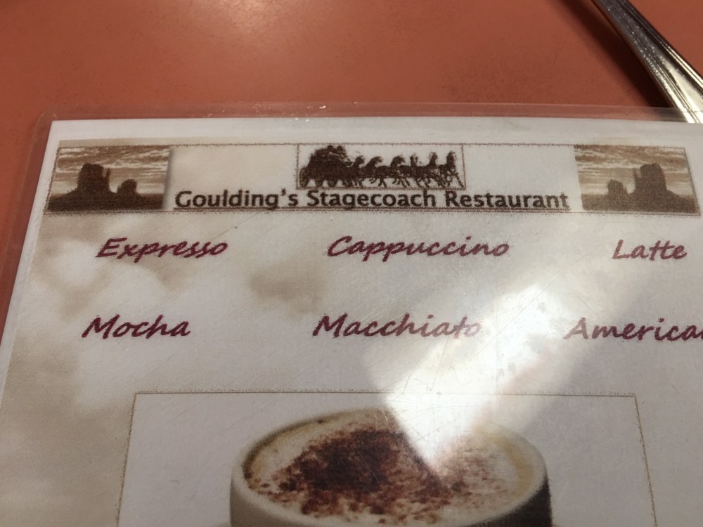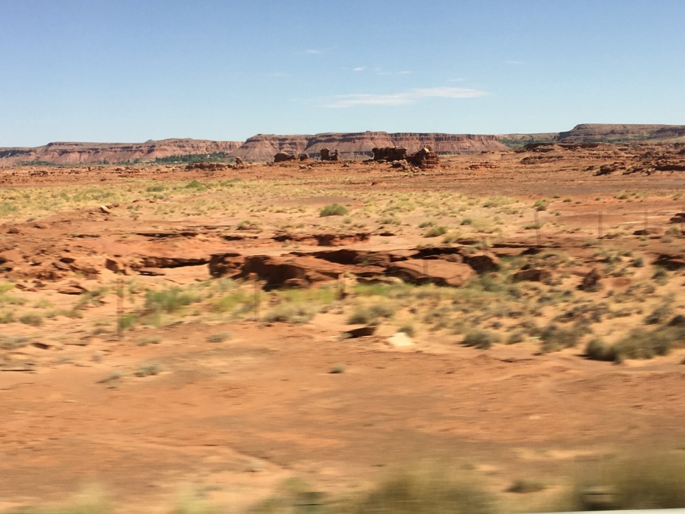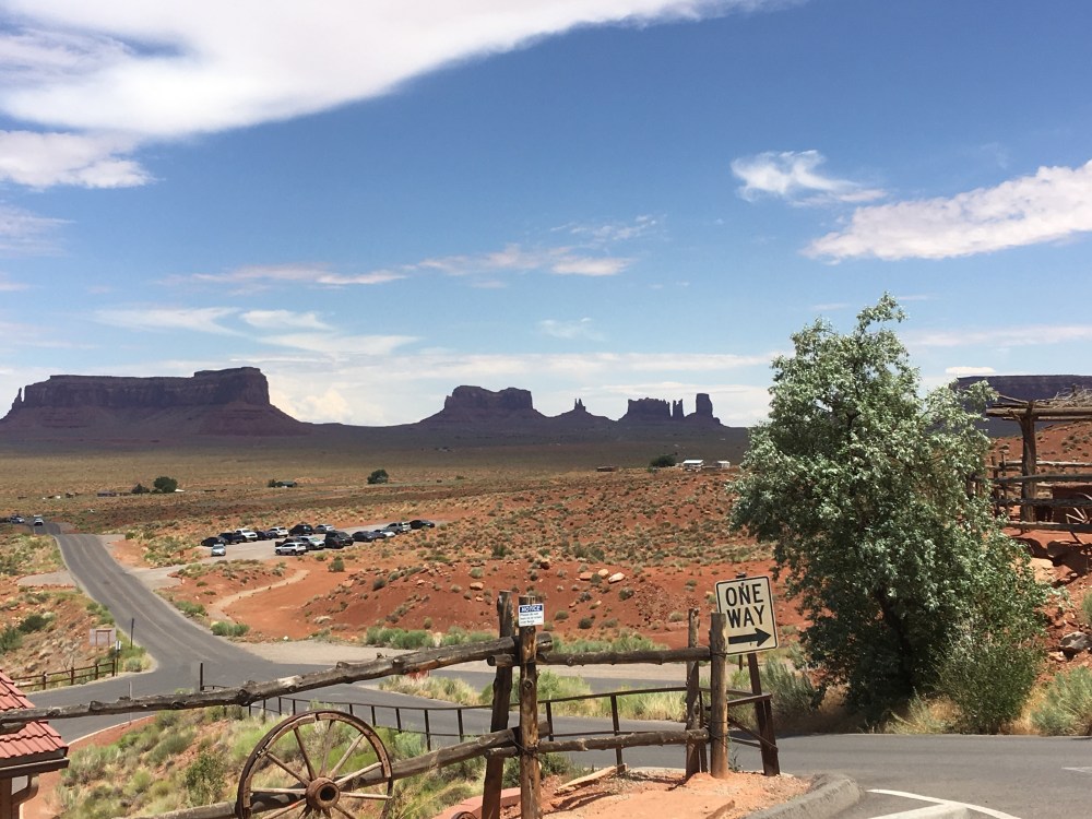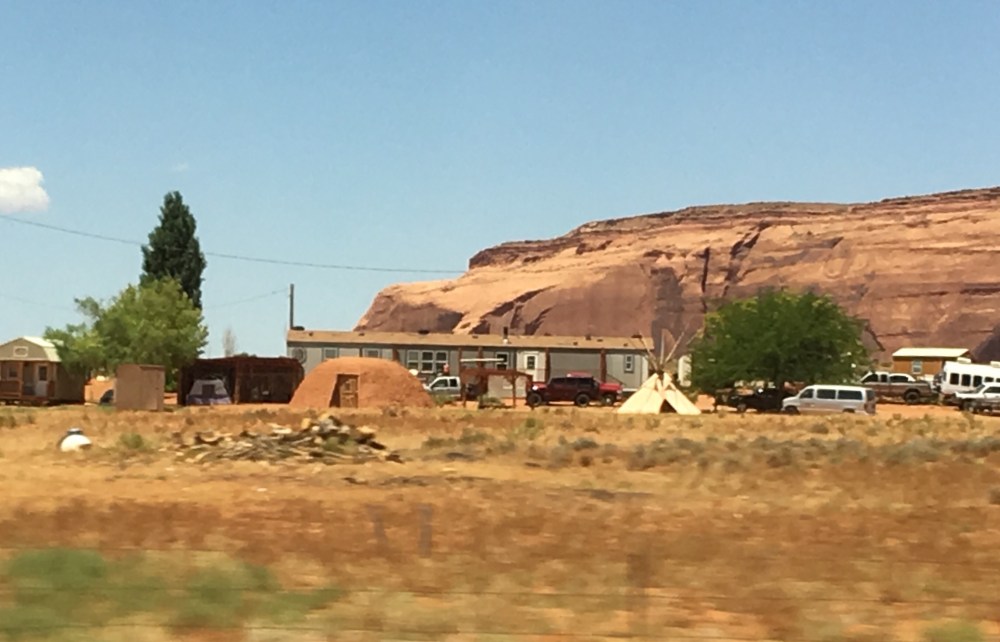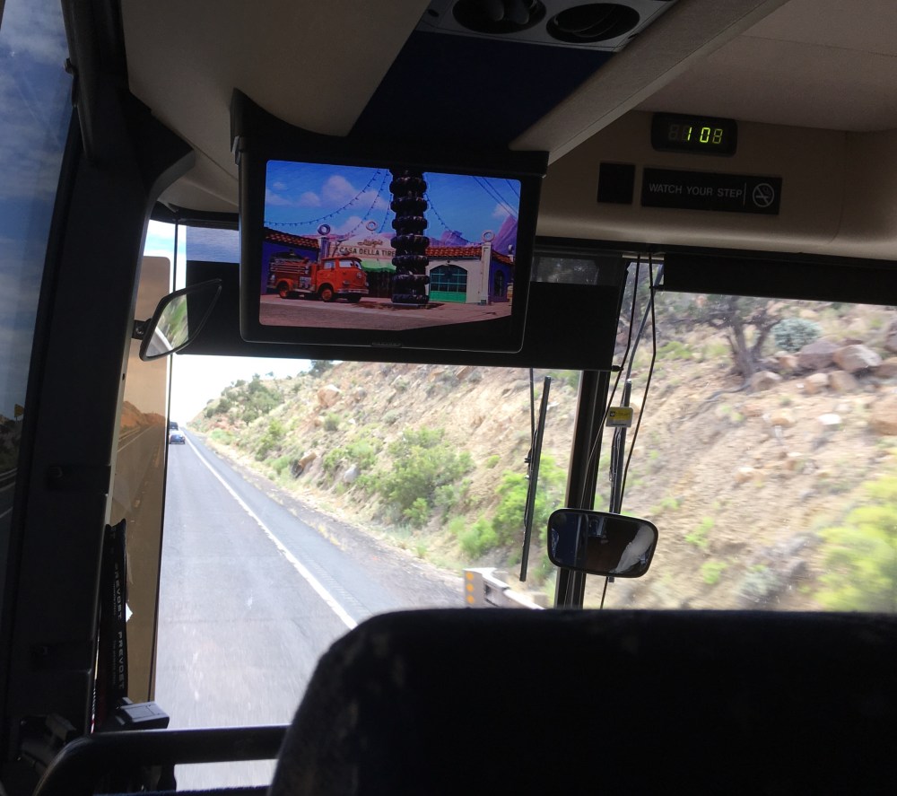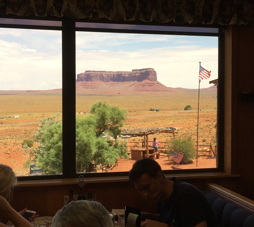Back on the bus, and Doug began to play the Pixar movie “Cars”…it was cool seeing this after having been to Williams, AZ a couple days before and on our way to Monument Valley, both being inspirations for the artists who created the movie. Today, we would see about half of the movie before we arrived at Monument Valley, our hotel for the night and most importantly (lol) lunch for today!