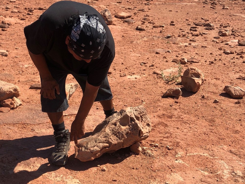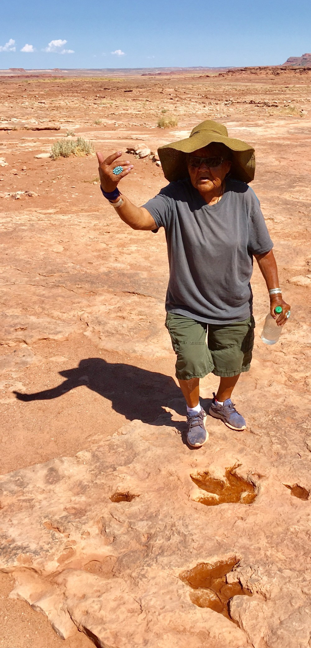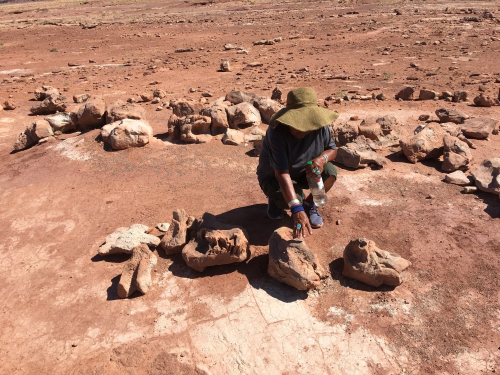 No Disappointments on this trip! It’s time for another stop that wasn’t published in our itinerary! I love these “surprise” visits! Doug told us that the Native Americans here are trying to create a better experience here. For now, Native people who work here make all of their money by showing tourists around and work solely on tips. Doug said that also, depending on the guide we get, the information may or may not be accurate. We were here about 20-25 minutes and I can honestly say it was fascinating. Having never seen anything about dinosaurs except in a museum, at Disney, or at Jurassic Park (Island of Adventure, Universal Studios Orlando) seeing actual fossils in the desert was a complete and utter first for me!