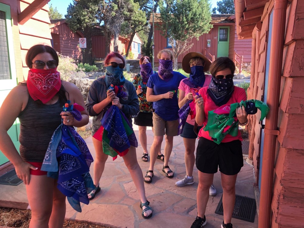 As we began to pull away from the Grand Canyon Village, our bus was hijacked by the Grand Canyon Bandidas!