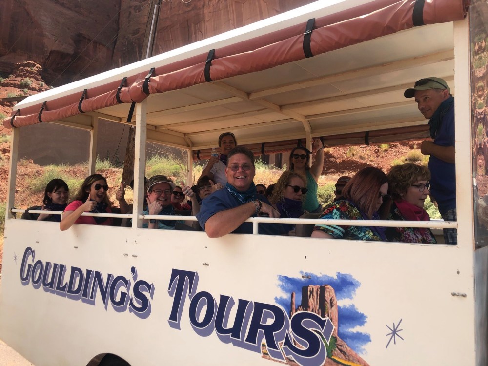 Diana had taken some of our group away and given them squirt guns and a stash of bandanas to pass out in preparation for our tour through Monument Valley after lunch. What a fun way to start a trip on a bus!