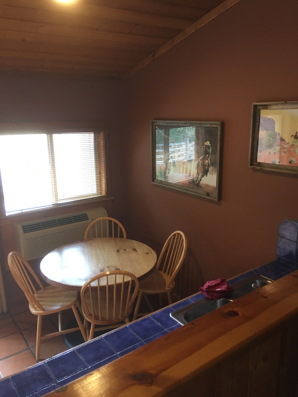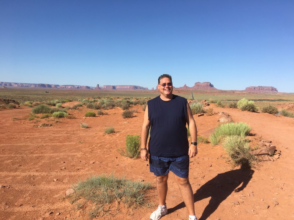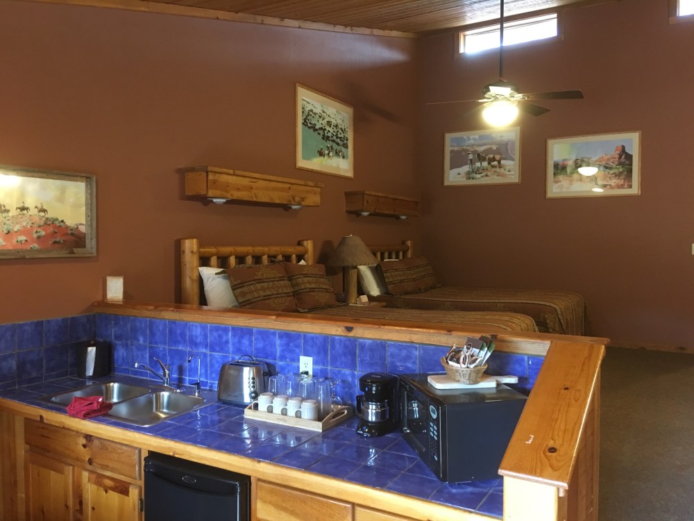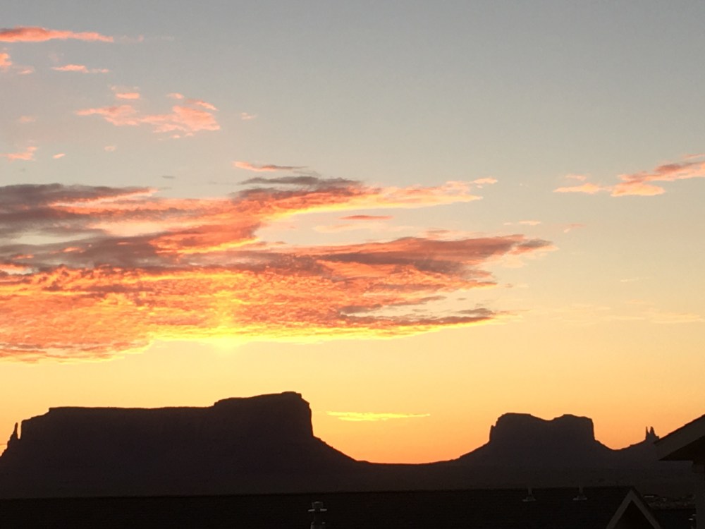 After getting ready, and watching part of “My Three Sons” on the television (we had vowed to keep this a “news-free” week!) it was time to place our luggage outside the door and await our tram to take us to breakfast. This morning, breakfast was at the hotel’s restaurant near their offices, where we had lunch the day before. They had set up a very nice private breakfast buffet for us. After breakfast, we had enough time to explore the gift shop, where I bought yet another t-shirt (this one had “Monument Valley” on it!) a magnet, and an arrowhead. I’m sure the arrowhead wasn’t authentic, but it was like $3, so why not?!?