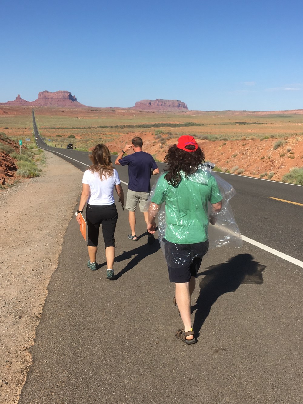 Once on the bus, we were told about a film project that Doug & Diana (our Adventure Guides) were working on. They asked if we wouldn’t mind helping out. Once we got down the road a bit, our bus pulled over at Mile Marker #13, where we were told one of the scenes from the film “Forrest Gump” was filmed. Amazingly, we were to recreate this scene! How FUN!!