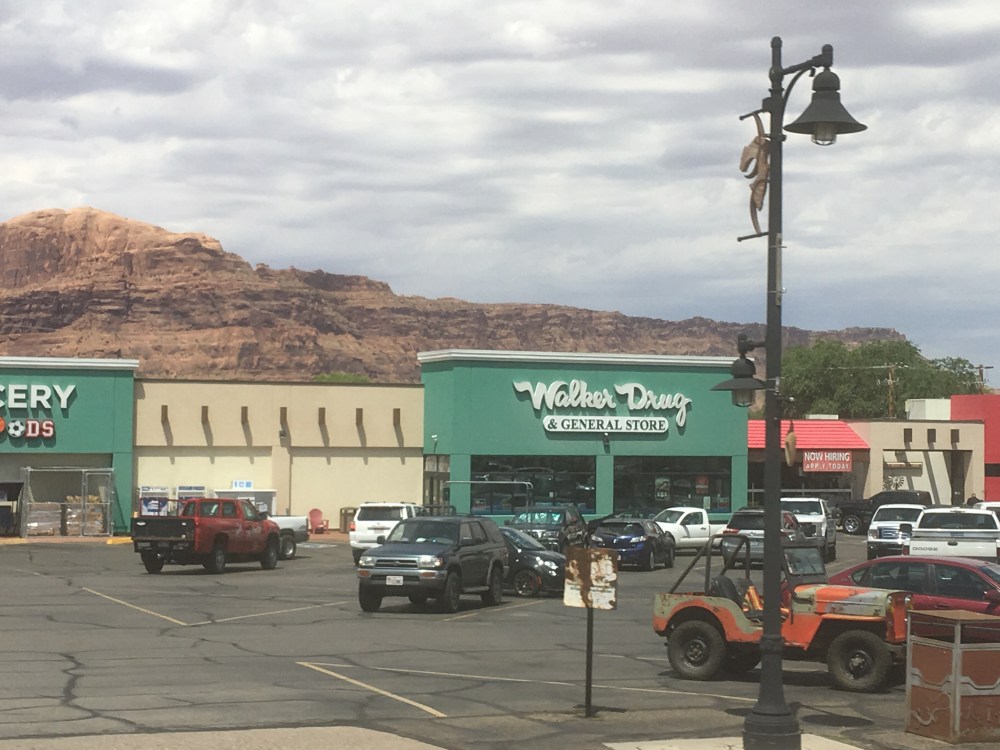 When we arrived in Moab, we stopped for another bathroom break, this time at the Walker Drug store. This store was huge and had everything you could possibly need. I planned on coming back here the next day when we had some free time scheduled. Even though beach/water shoes were included in our recommended packing list, Doug said that if you had forgotten them, or just didn’t have any, to go ahead and purchase a pair. I believe Walker’s had water shoes for $9.00.