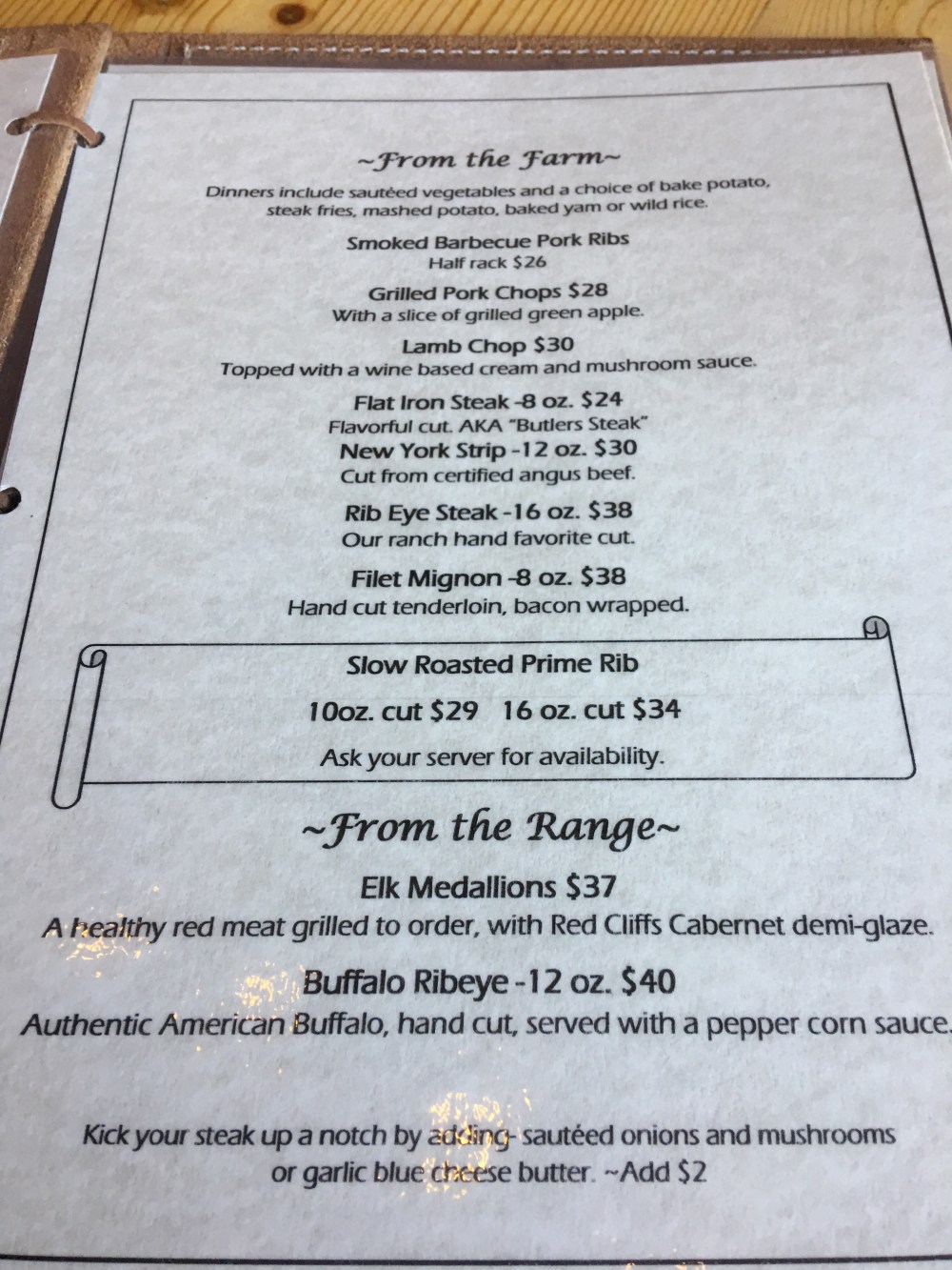 Dinner tonight was included (anything except alcohol, which could be purchased separately) at the Cowboy Grill, and was amazing. And, once again, the view was spectacular. I had the buffalo ribeye, mushrooms, baked potato, salad and for dessert, I had the flan. After seeing the prices on the menu (which to be honest, were fair for such a great restaurant with amazing views) I was happy to know that dinner was included in the ABD fare.