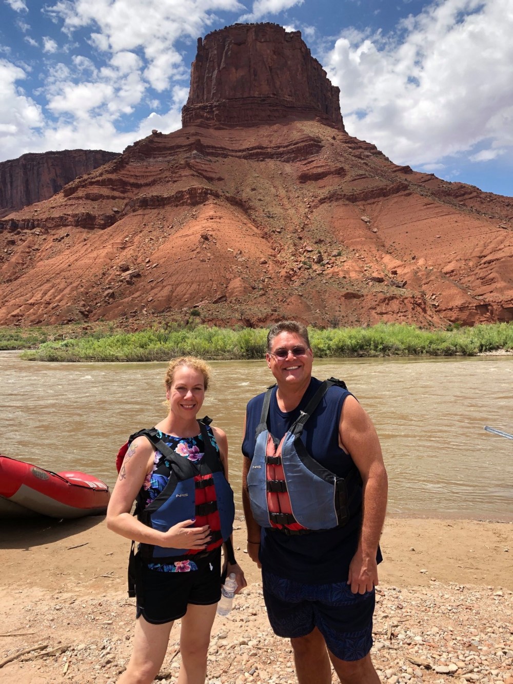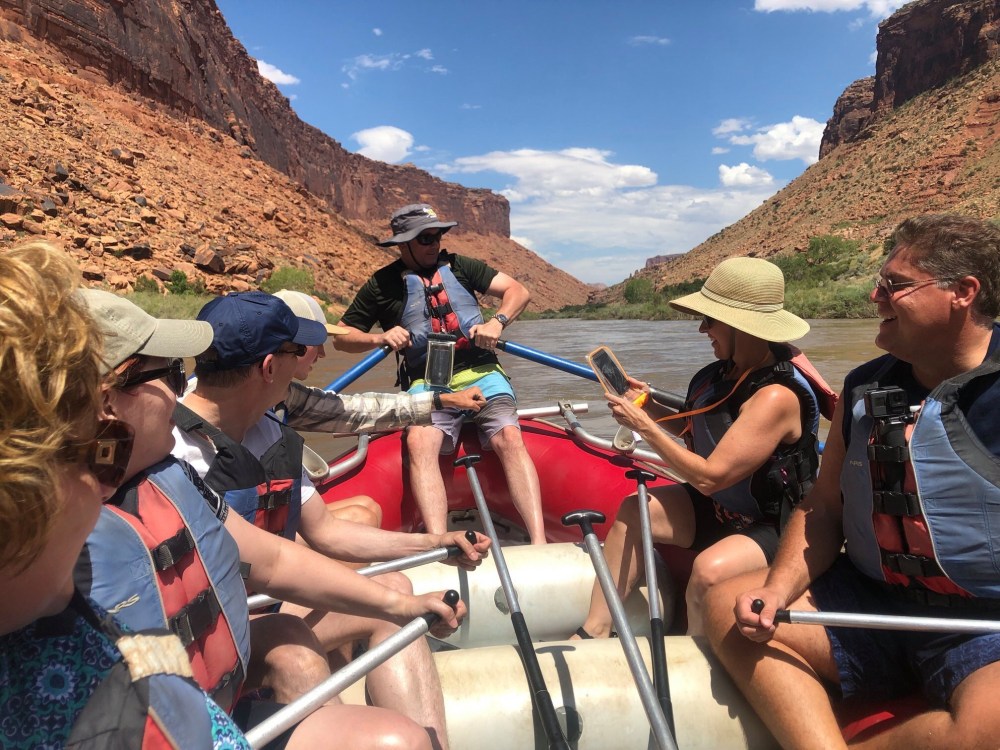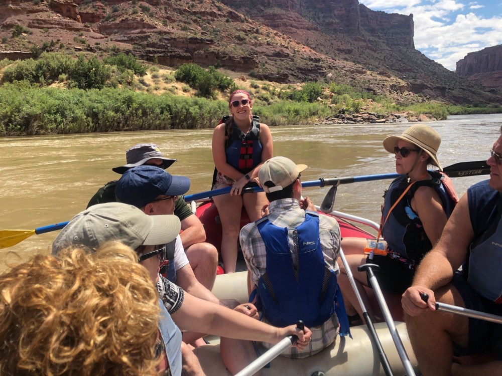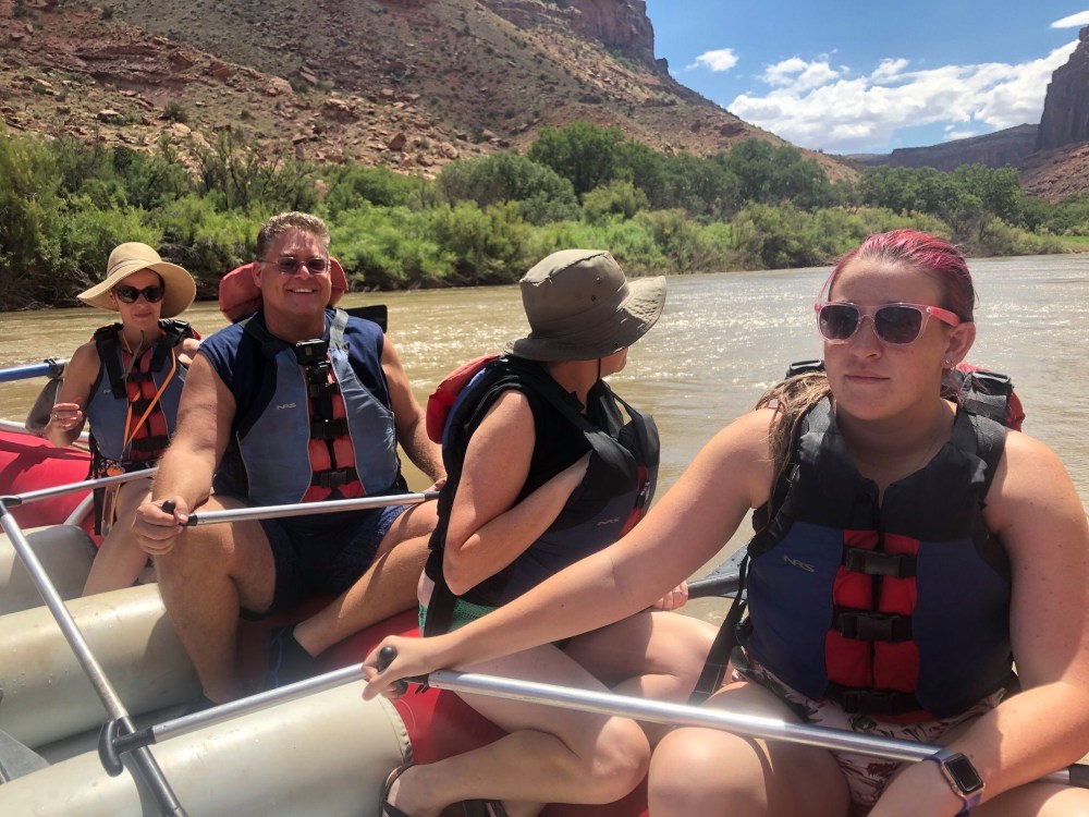 Today, we are heading to Moab, Utah. It will be our last place we’ll be visiting on this vacation. Two more nights and this amazing vacation will be over. No time to get sad, because there is still more to see and way too much fun to be had! After we arrive at our resort and have lunch, we are rafting down the Colorado River! Everyone is so excited about this. Most of us opted to wear our swimsuits today, so we wouldn’t have to bother with changing later.