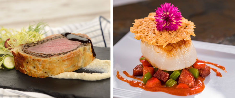 - Beef Wellington: Mushroom Duxelle, Prosciutto, and Puff Pastry with Red Wine Demi-Glace and Fennel Cream