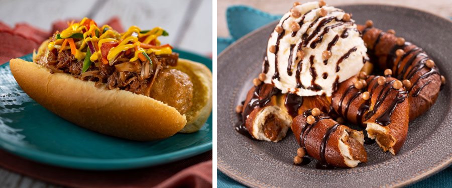 - Warm Brown Sugar-stuffed Pretzel with Banana Soft-serve Ice Cream and Chocolate Sauce