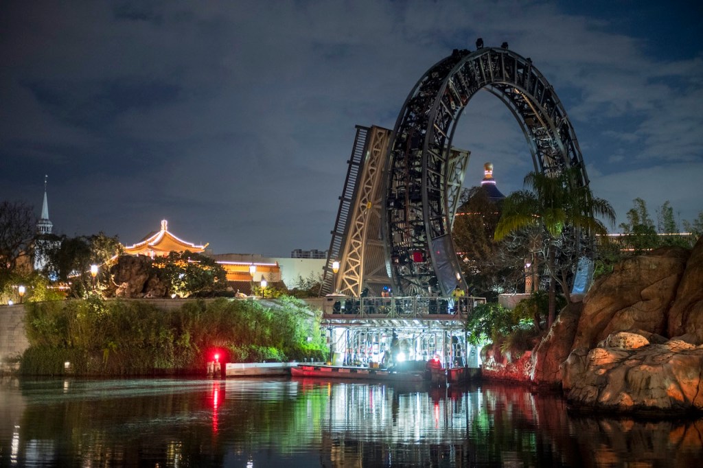 Once complete, “Harmonious” will be one of the largest nighttime spectaculars they’ve ever produced. Disney Imagineers are busy setting the stage of this innovative toolkit, preparing each of the show’s five floating platforms to take its place on World Showcase Lagoon. Positioned like a compass, these platforms house the primary show equipment for “Harmonious,” and on the recently-placed center platform stands an iconic six-story-tall central ring structure, supporting a high-density water curtain, moving lights, fountains and more.