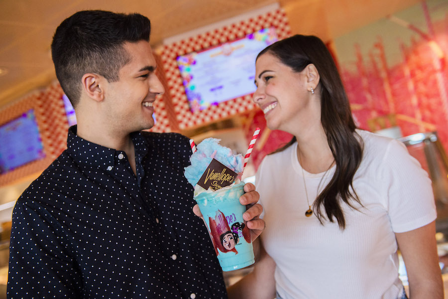 After dinner – or let’s be honest, before dinner – why not grab dessert? While sailing on the Disney Dream or Disney Fantasy, you can stop by Vanellope’s Sweets & Treats or Sweet on You for a tasty treat to share! The delectable milkshakes and ice cream sundaes crafted by Disney’s culinary team are perfect for satisfying your sweet tooth. And let’s not forget all the great photo opportunities in these bright and colorful dessert shops that one could truly call eye candy!
