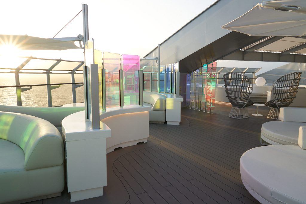Think VIP Rockstar service, chilled vibes, cool tunes, sophisticated loungers and being surrounded by dichroic glass casting stunning rainbow reflections through the rooftop. Sailors can live out their vacation dreams and be the rockstar they are.