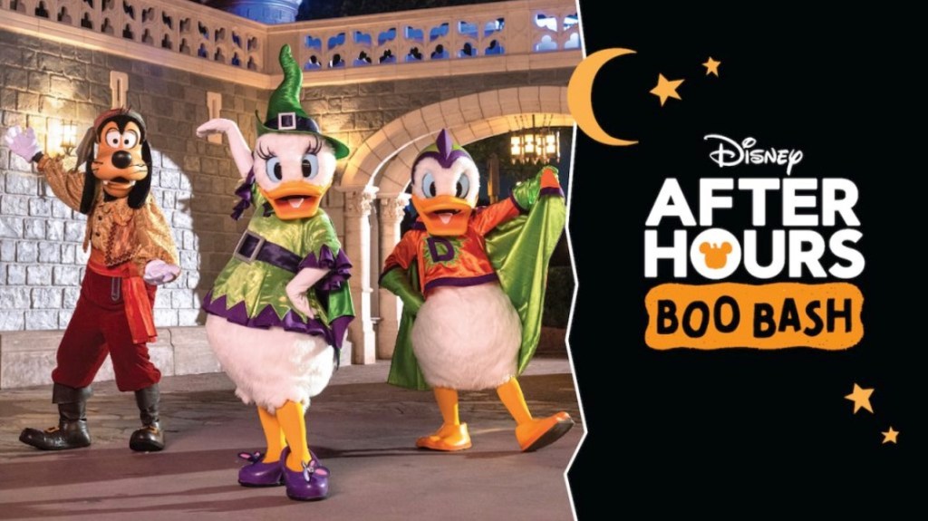 - “Disney After Hours Boo Bash” tickets will grant admission to Magic Kingdom park as early as 7 p.m., giving Guests time to enjoy even more of their favorite Magic Kingdom haunts before the event begins. These dated event tickets do not require an additional day theme park ticket or Disney Park Pass theme park reservation.