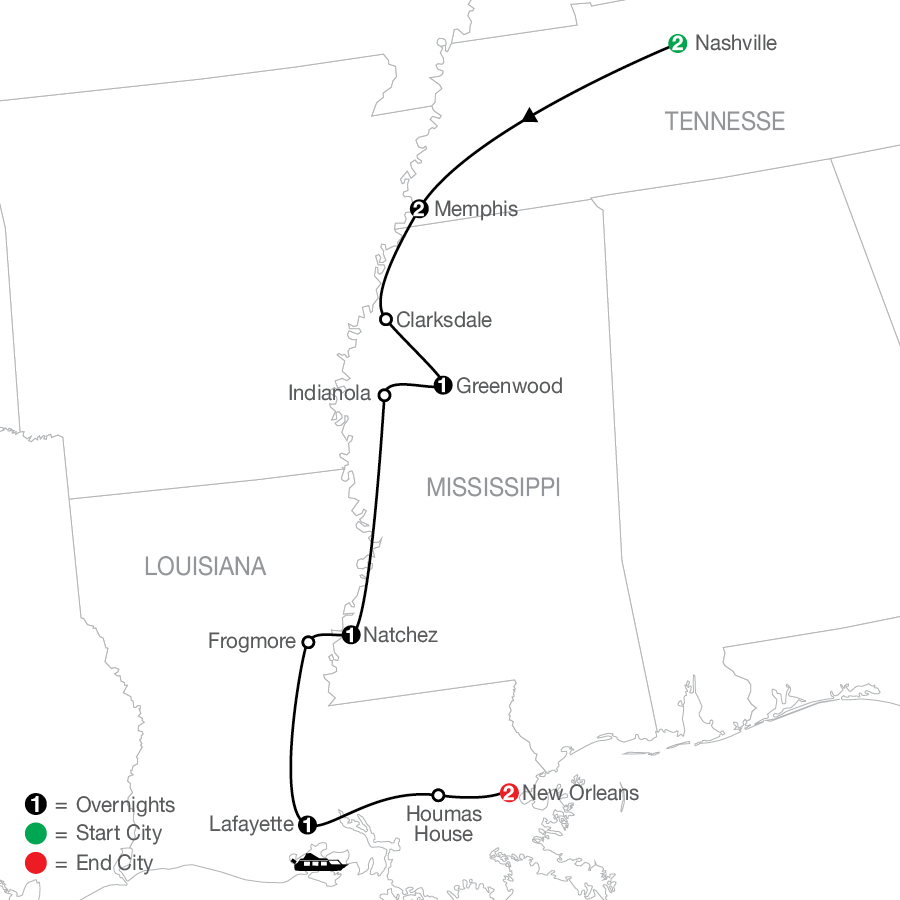 Are you a little bit country? A little bit rock ‘n’ roll? Then you’ll love this musical heritage vacation that follows the influential sounds of chart-topping history from Nashville to Memphis with a crescendo in New Orleans for all that jazz. Strut your way down Nashville’s Honky Tonk Row and to reserved seats at the Grand Ole Opry. Swivel your hips through Elvis Presley’s Graceland estate and the famous studios and streets of Memphis. Jump, jive, and wail through the New Orleans French Quarter in search of the blues and beignets. You’ll also face the music as you follow the path of the Mississippi River to the famed Delta Blues Museum, the B.B. King Museum, and Morgan Freeman’s Ground Zero Blues Club. Both a musical and southern heritage tour, this vacation through the Deep South leads you to elegant antebellum mansions, historic cotton plantations, and the not-so-soft sounds of country, rock, and rhythm and blues.