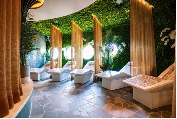 For the first time ever aboard a Disney ship, Senses Spa is offering even more ways to relax and rejuvenate, with a dedicated outdoor relaxation space. In this open-air oasis, guests can unwind in whirlpool spas, rest on plush loungers or find their center during yoga sessions. In addition to guest-favorite offerings including heated ergonomic loungers, sensory spa showers, and sauna, steam and dry chambers, The Rainforest signature experience has been expanded to include our brand-new ice lounge that offers unique and refreshing thermal therapy treatment.