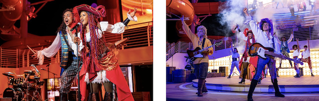 On one special night of every voyage, guests will make their way to the upper decks where they will be hosted by Captain Redd and her crew of swashbuckling rockstars. In addition to remarkable stunts, special effects and plenty of surprises, Captain Redd and her merry band of adventurers will perform famous rock-radio hits including a one-of-a-kind rendition of “Yo Ho (A Pirate’s Life for Me).”
