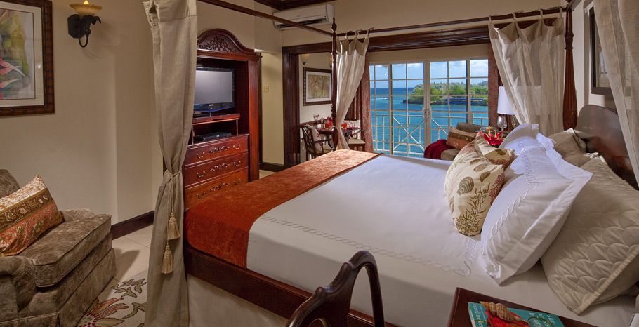 Next on the list for resorts with the most affordable oceanfront suites is Sandals Royal Caribbean. This resort in Montego Bay has a variety of options for couples who prefer to spend less, but still want amazing views and to be near the ocean. Among the most popular suites at a lower price point, the Beachfront Honeymoon Walkout Club Level suites aim to please. These suites are directly on the beach on the ground floor of the Balmoral building. Guests staying here can expect exceptional views and quick and easy access to the beach.