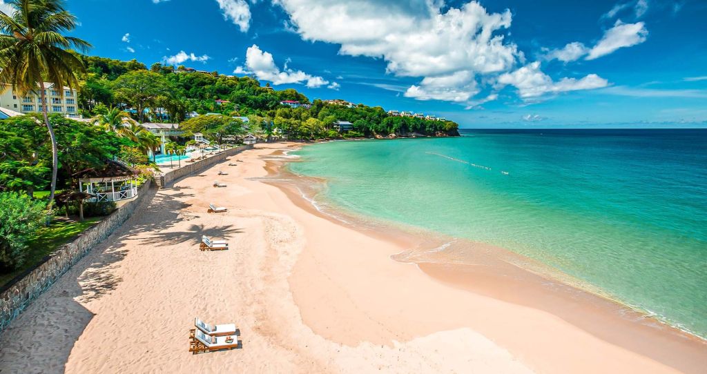 Set on a sprawling 220-acre estate, Sandals Regency La Toc in Saint Lucia is at the heights of luxury. This resort has the most charming, half-moon-shaped beach, lush hillsides, dramatic cliffs, and even its own golf course. The landscape at this resort is quite diverse, and that’s something guests can appreciate no matter which room category they decide on.