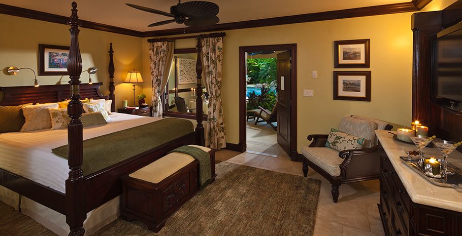 If you can’t get enough of the pool, then a swim-up suite at Sandals Royal Barbados might be just what you need on your vacation. Starting with the South Seas Swim-Up Club Level Ultra Suite, you can sift through a range of price points for suites in the swim-up category at Sandals Royal Barbados. This first option includes a patio Tranquility Soaking Tub that can be super relaxing and romantic for couples. The South Seas Swim-Up Club Level Ultra Suite also has zero-entry access into a Crystal Lagoon pool.