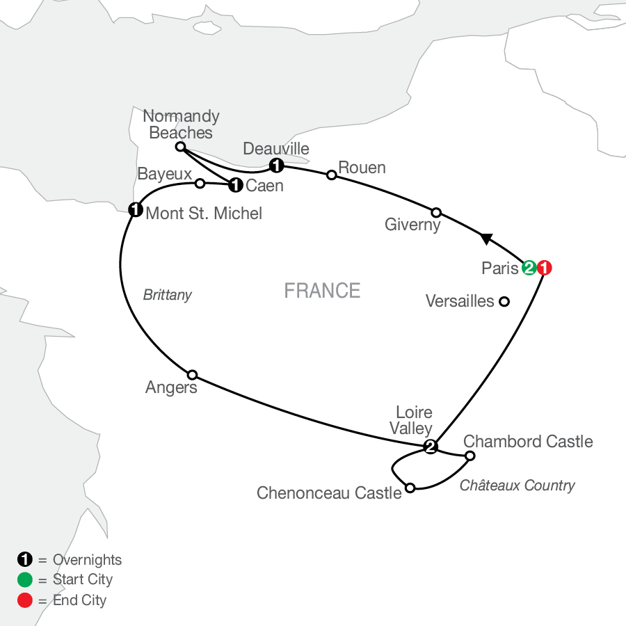 Isn’t it time you nipped monotony in the bud? From fields of yellow sunflowers to cellars of pink rosés, this fascinating tour of France invites you to survey the sensuous land and pick the perfect bouquet. Fragrant gardens and aromatic wines are just the beginning of the sweet experiences that await from the City of Light to the sunlit regions of Normandy, and the Loire Valley. Tiptoe through the tulips at Claude Monet’s rainbow-colored gardens, float down the castle hallways in dreamy Châteaux country, and swirl and sip your way from the lively cafés of Paris to the storied wineries of the French countryside. Traveling from the Seine to the sea, we’ve handpicked the best coastal experiences—the resort town of Deauville, the famous Abbey of Mont St. Michel, and the poignant beaches of Normandy, site of the Allied Forces’ D-Day invasions during World War II.