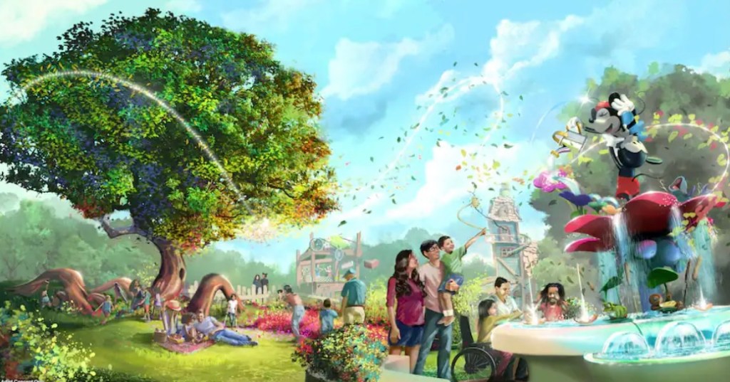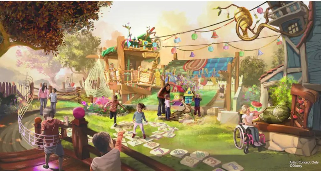 The reimagined Mickey’s Toontown will provide open, grassy play spaces for everyone to unwind, starting with CenTOONial Park, the first space guests will see when they enter the land. CenTOONial Park will be anchored by two new interactive play experiences; a beautiful fountain featuring water tables designed for play that invite guests to have a sensory experience, plus a nearby dreaming tree with sculpted tree roots providing an opportunity for children to crawl and explore.