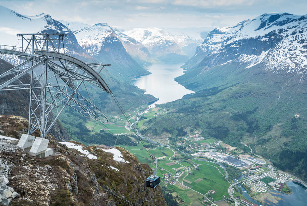 EPIC RIDE Soar 3,000 feet to the summit of Mount Hoven on the aerial tramway above the Nordfjord shores. Take in the heavenly panoramic view of Mt. Skåla and Lake Lovatnet to the east, Jostedalsbreen Glacier and Olden Village to the south, and the winding course of the stunning Nordfjord below. Heavenly!