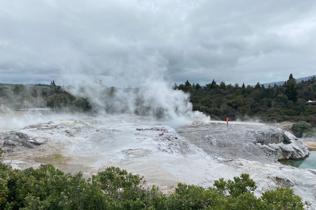- Gazing at the dramatic geysers which dot the landscape at the Te Puia Geothermal Park, also home to the largest active geyser in the Southern Hemisphere.
