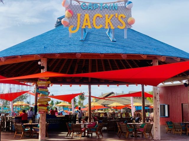 Captain Jack’s — Near the Arrivals Plaza, this full-service bar (fashioned after a skiff) with live music is the perfect place for a first beer or cocktail, and altogether a great place to hang out during the day.