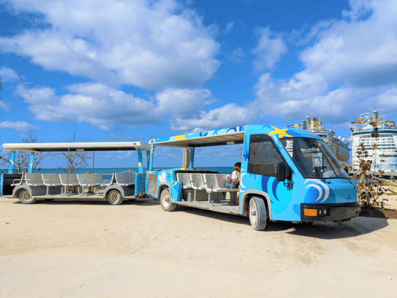 - Tram service runs every 15 minutes, all day, and includes five stops: Arrivals Plaza (near Thrill Waterpark), South Beach, Coco Beach Club & Up, Up and Away, Oasis Lagoon and Chill Island®. Dedicated pier tram runs continuous service between the ship and Arrivals Plaza. Accessible trams are available on regular rotation throughout the island.