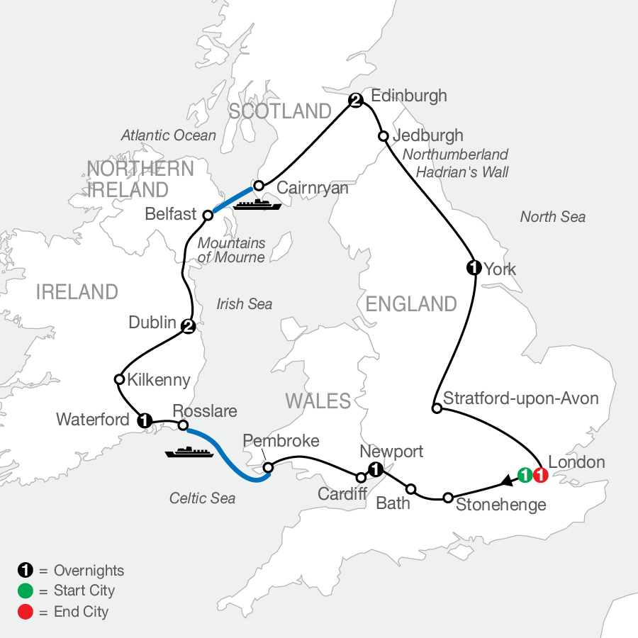 Don’t think you can see the top sights of Britain and Ireland in 10 days? Sharpen your pencils to cross off your bucket-list destinations in five fabulous countries. A jolly good time awaits in England, Scotland, and Wales, plus both territories of Ireland, as you explore the lively capital cities of each and the thatched-roof-dotted countryside in between. Coast through rolling hills, ferry across legendary waterways, and skip down cobblestone streets to discover the wonders of Stonehenge, Waterford, York, and more on this essential tour of Britain and Ireland. Along the way, you’ll drink in the sights of fairytale castles and storybook settings as well as the locally brewed ales, strong Irish coffees, and perfectly aged Scotch whiskies passionately poured in every pub. Factor in time to shop for bits and bobs and taste local favorites like fish and chips, and you’d be off your trolley not to come along!