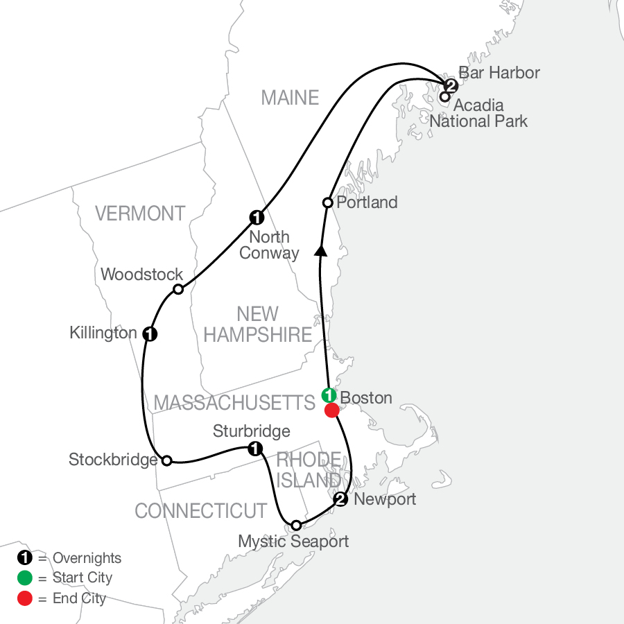 Mother Nature meets our Founding Fathers on this electrifying fall foliage tour through historic and bucolic New England. As you witness the blazing reds, oranges, and yellows of autumn’s turning leaves, you’ll also be introduced to the country’s early trailblazers and most curious of characters. Trace the steps of Paul Revere, John Adams, and Benjamin Franklin through the storied streets of Boston. Walk the halls of Cornelius Vanderbilt’s opulent Newport mansion. Feast your eyes on the world’s largest collection of Rockwell originals at the Norman Rockwell Studio & Museum in Stockbridge. Yet no palette is as bright as the fiery leaves of the oaks, poplars, and maples that line the striking Maine coastline, adorn the rocky headlands of Acadia National Park, and shelter the quaint, covered-bridge countryside of Vermont and New Hampshire. This is leaf peeping and sightseeing at its absolute finest.