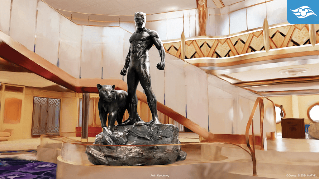 Presiding over the Grand Hall will be a stunning statue of T’Challa, the Black Panther: King of Wakanda, devoted son and beloved brother sworn to protect his kingdom — and the Disney Destiny.