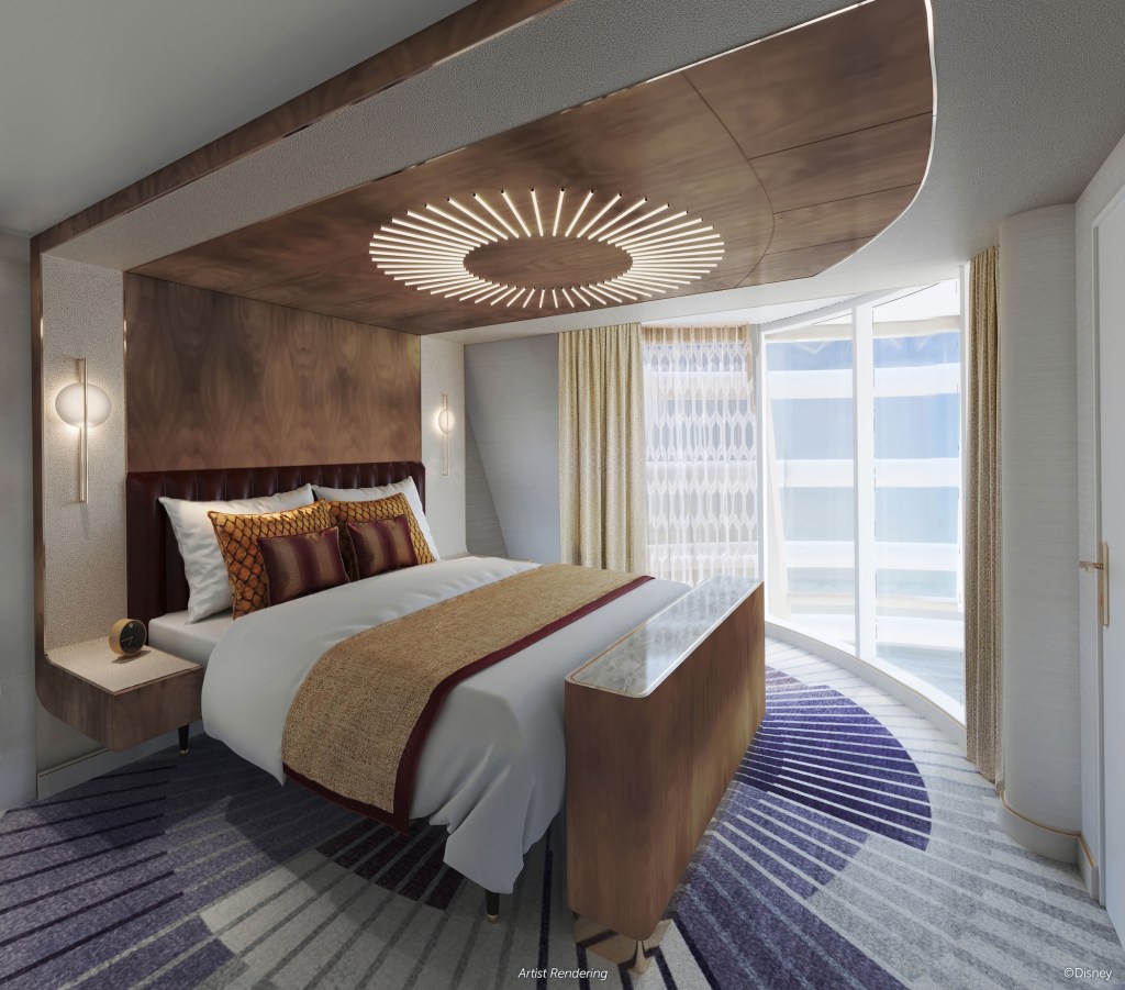 The Destiny Tower Suite will be a Marvel-inspired penthouse honoring Iron Man’s mighty legacy with a luxurious take on the sleek, industrial designs of Tony Stark. Armor-like materials and mechanical elements will be balanced by soft, inviting finishes to create an opulent experience exclusive to the Disney Destiny.