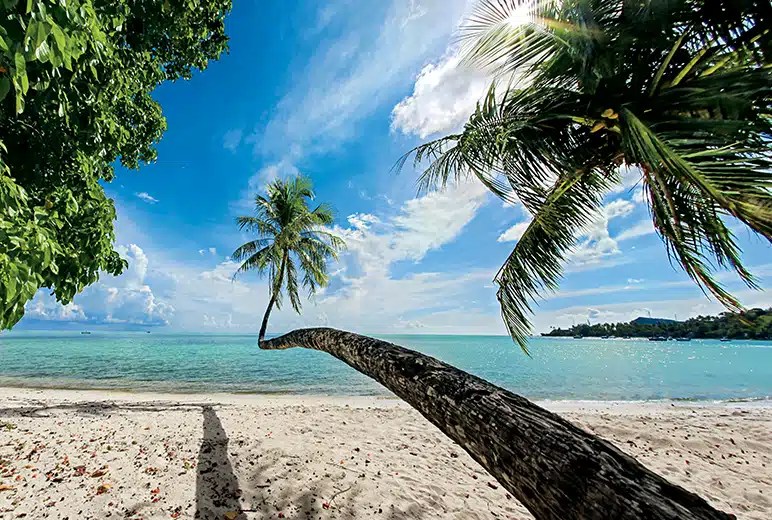 Lined with powdery white sand and waters clear enough to see your toes, this beach is peaceful and quiet, with a lush, jungled mountain often called a “Garden of Eden” as a backdrop, too. The beautiful lagoon is ideal for swimming and snorkeling.