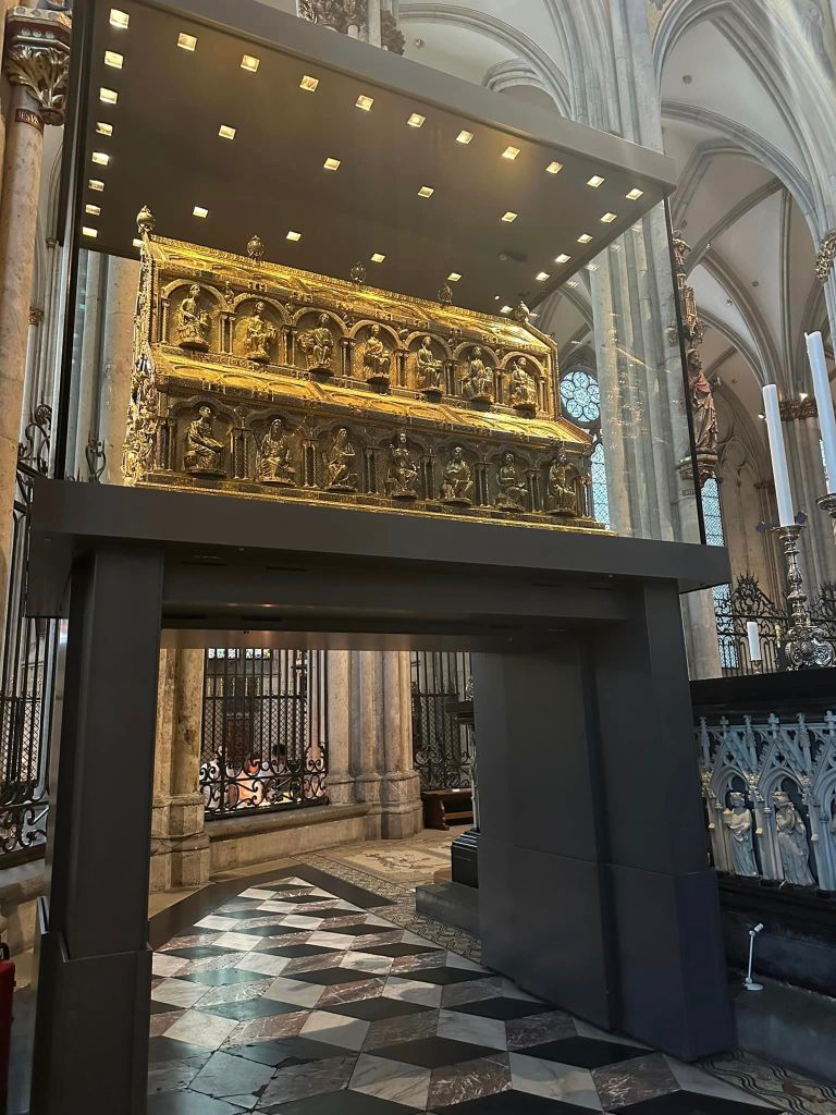 After the tour, I went into the cathedral to see what is reported to be the final resting place of the Three Wise Men. In 1164, Rainald transferred these relics to Cologne where the shrine for the three kings was built. Their bones were wrapped in white silk and returned to the shrine. The relics have since attracted a constant stream of pilgrims to Cologne.