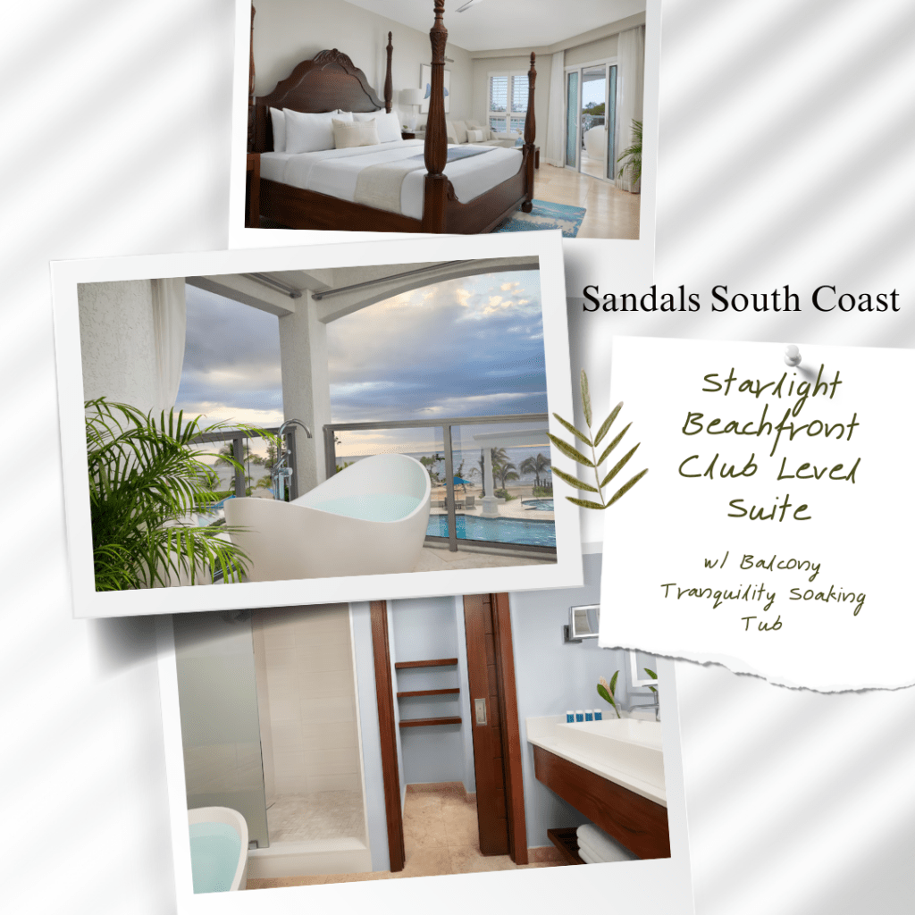 🌴 Starlight Beachfront Club Level Suite w/ Balcony Tranquility Soaking Tub at Sandals South Coast (in Jamaica)