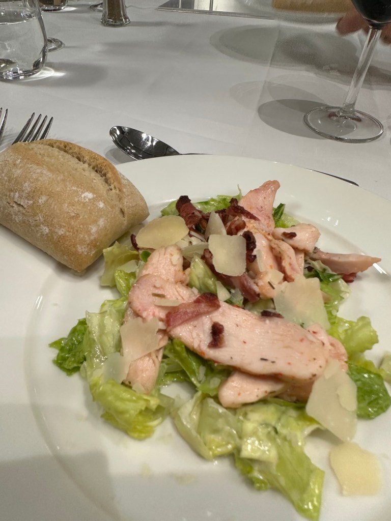 Back at the hotel, we had a little time to relax before dinner. Our included meal tonight was simple and satisfying: a Caesar salad, a hearty beef stew, and a truly decadent French dessert (the name escapes me, but I’d recognize that taste again in a heartbeat). And of course — the bread and French butter continue to steal the show at every meal.