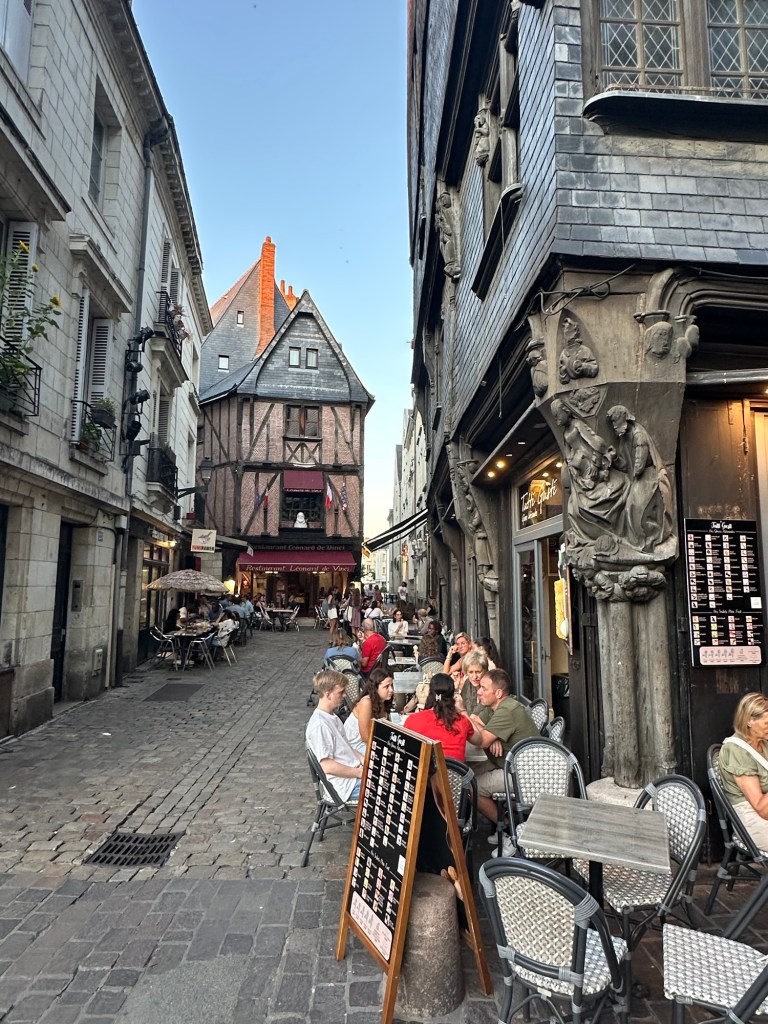After dinner, I went for a walk with one of my new travel friends. Tours is such a fascinating city — a blend of medieval charm and modern energy. The historic center is full of half-timbered houses, narrow cobbled lanes, and lively squares. Once the capital of the ancient province of Touraine, Tours has long been an important stop for pilgrims on the road to Santiago de Compostela. These days, it’s a university town with a relaxed, welcoming vibe — perfect for a post-dinner stroll.