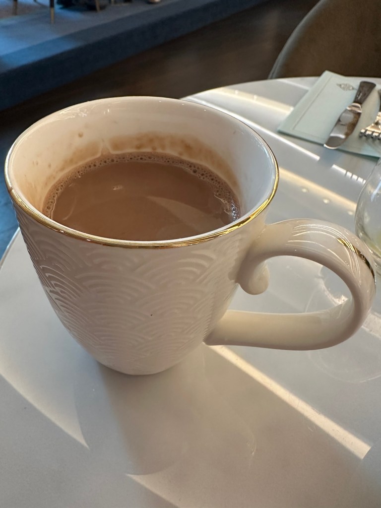 And not just any breakfast — possibly the most delicious one I’ve had this trip. The chocolat chaud was unlike anything I’ve tasted before. Warm (but not too hot), rich, and creamy, with the deep flavor of excellent dark chocolate — not too sugary, not too sweet. Just perfection in a cup.