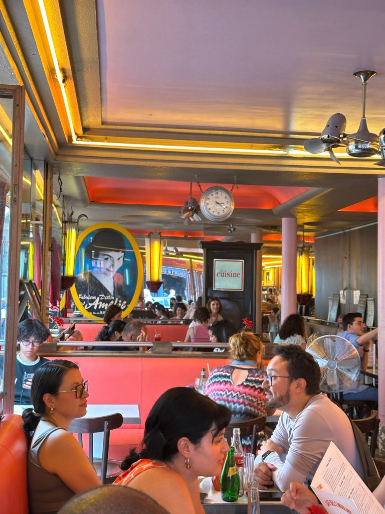 Of course I had to go inside. The café has kept much of its quirky charm (but the tobacco counter was removed a couple of years ago) — a perfect blend of vintage and whimsy, just like the movie. I ordered boeuf bourguignon (which was rich and flavorful), a thé glacé maison — not too sweet with orange, lemon and mint (YUM!!), and of course, I had to finish with a crème brûlée — because if you know the film, you know that Amélie finds joy in cracking the caramelized sugar top with the back of her spoon. Naturally, I did the same. I half expected to see Amélie herself quietly observing the world and plotting one of her good-hearted schemes.