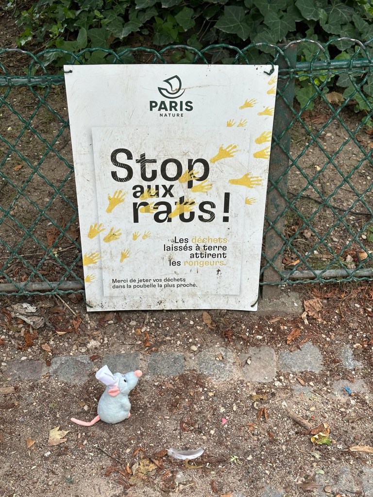 As I was leaving, I noticed a sign urging visitors to dispose of trash properly to avoid attracting les rats. Let’s just say Remy was not impressed. He gave the sign a rather indignant look. (Don’t worry — more on his adventures will be in the blog soon enough 😉.)