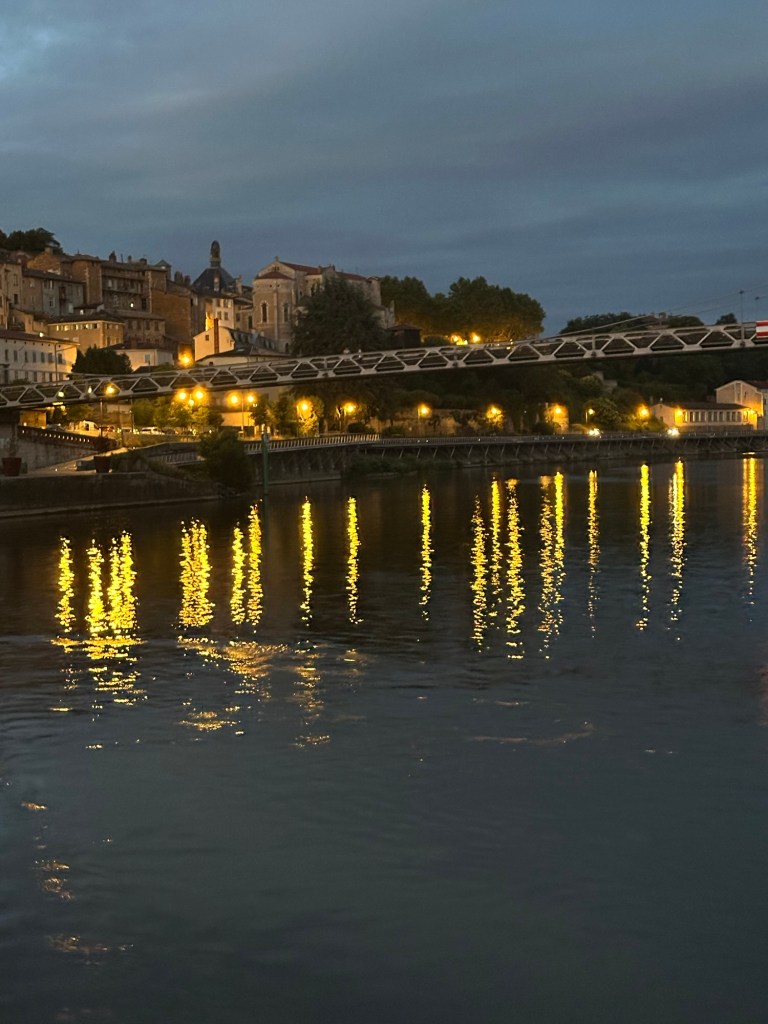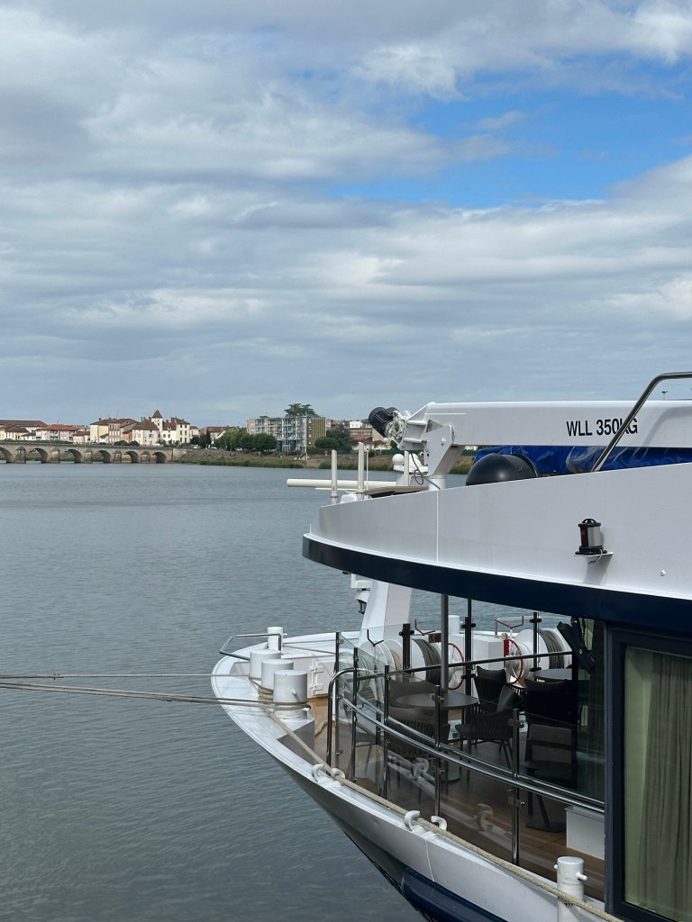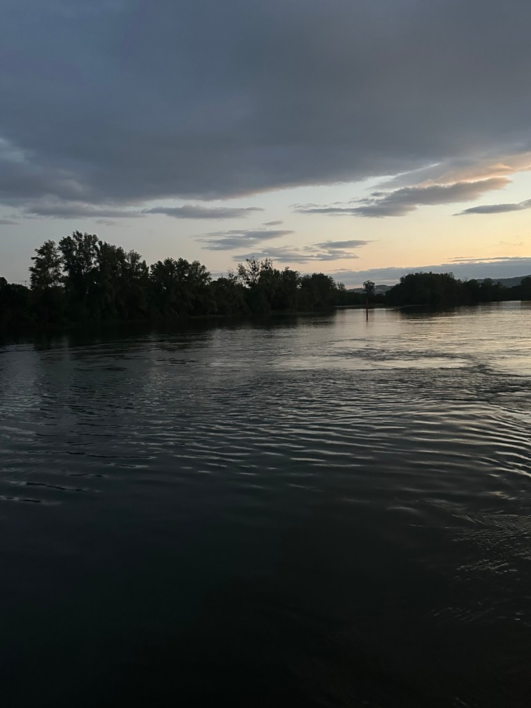 Now, I’m back in my room, wall of windows wide open, watching France float by as we cruise toward Lyon. The lights on the water, the quiet hum of the river… this is the life. 💙🤍❤️