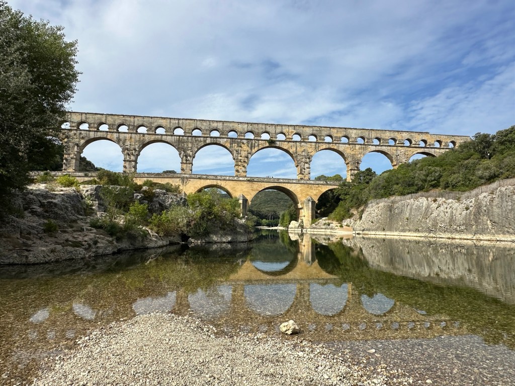 After breakfast, I joined the optional excursion to the Pont du Gard—and it was absolutely worth it. This ancient Roman aqueduct is one of the best-preserved in the world and a UNESCO World Heritage Site. Built in the first century AD, it was part of a 30-mile system designed to bring fresh water to the Roman colony of Nîmes. What’s astonishing is that it was constructed without mortar—the Romans engineered the massive stone blocks to stay together using sheer precision and gravity. And after all these centuries, it’s still standing proudly.